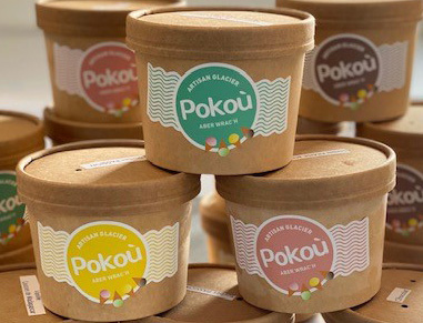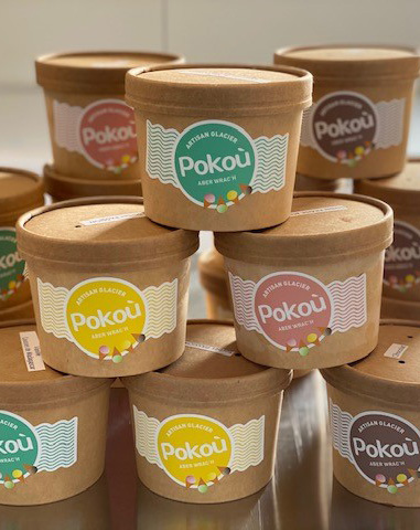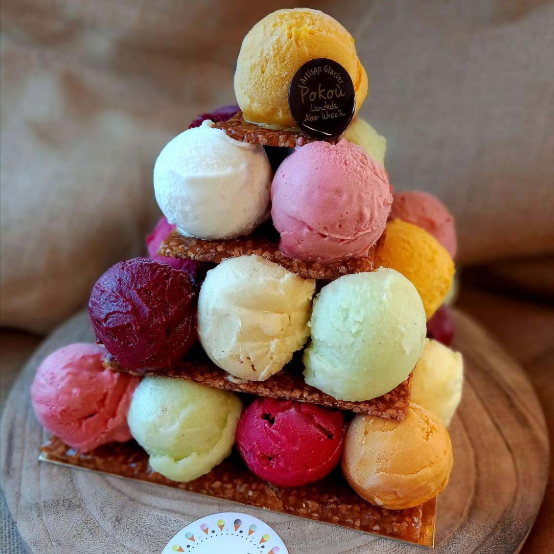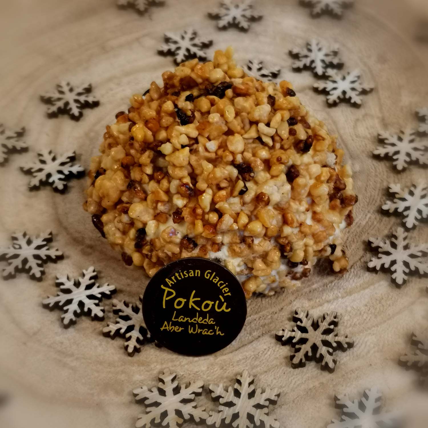 crème glacée vanille, chocolat, caramel fleur de sel, pistache pure, praliné...